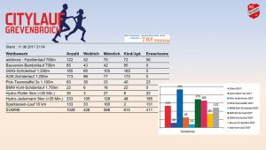 Heute Abend – also deutlich früher als in den Vorjahren – hat sich der 1.000. Läufer für einen der neun Wettbewerbe des Citylauf Grevenbroich angemeldet. Das verspricht schon für die letzten acht Tage der Online-Anmeldefrist ein neuer Teilnehmerrekord zu werden. So sind im AOK-Schülerlauf heute schon mehr Starter gemeldet als im vergangenen Jahr. Im Pick-Staffellauf